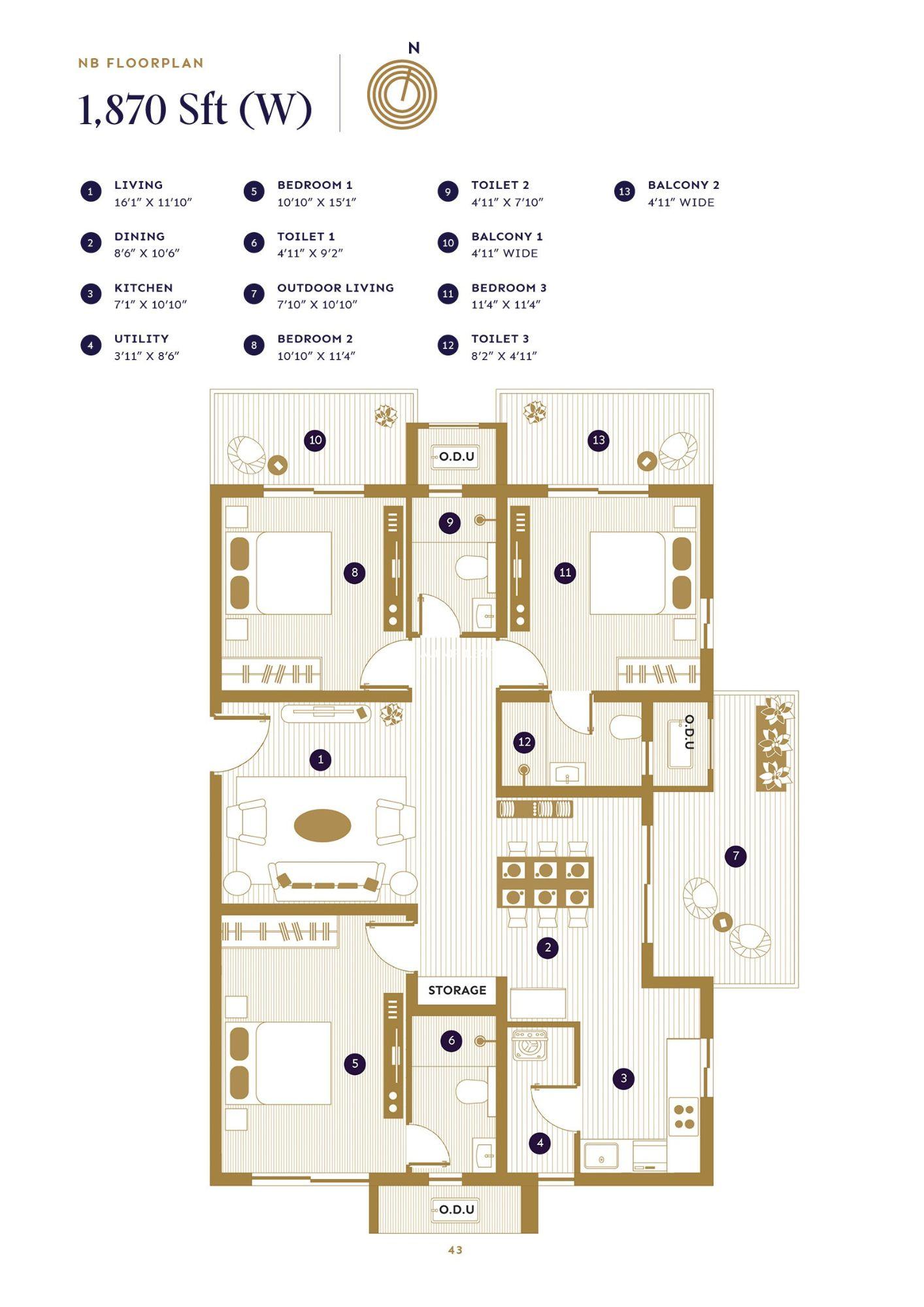 • Built-up Area: 1,695 – 1,870 sq.ft